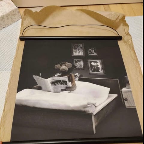 Ha Danmarks mest berømte ape hengende hjemme, på et vakkert lerret, med naturlige trelister og lærsnor. Profilbildet av den populære treapen ble designet av Kay Bojesen i 1951, og er det mest ikoniske av alle dyr. Lerretet måler 40 x 56 cm, og inspirasjonen til bildet er hentet fra Bojesens egne bildeinstallasjoner. Ideell for barnerommet, over sofaen eller ved spisebordet hjemme.