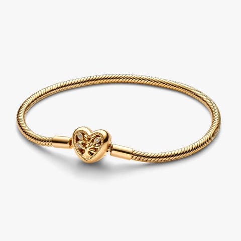 Pandora Dame Armbånd i gullfarget materiale. Armbåndet har en lenkedesign med hjerteformet lås. Passer for dame.