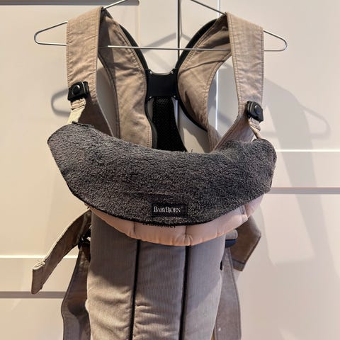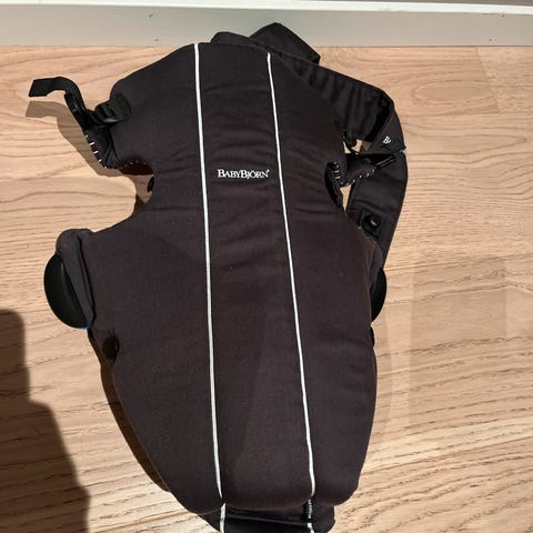 Baby Bjørn Bæresele i svart med mønster. Designet for barn med vekt fra 3,2 til 4,5 kg. Laget i pustende materiale med justerbare stropper for komfort og sikkerhet.