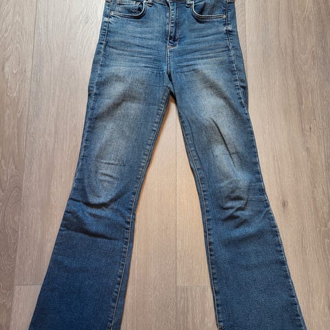 Selger disse grå jeansene fra Gina Tricot med sleng. Størrelse 40. Selges fordi de ikke passer. Buksen har litt slitasje langs bunnen av buksen (se bilder)