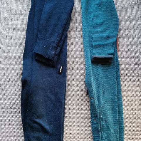 Ingen merker eller hull. Holdt til og med str. 56 hos oss. 100% merinoull.