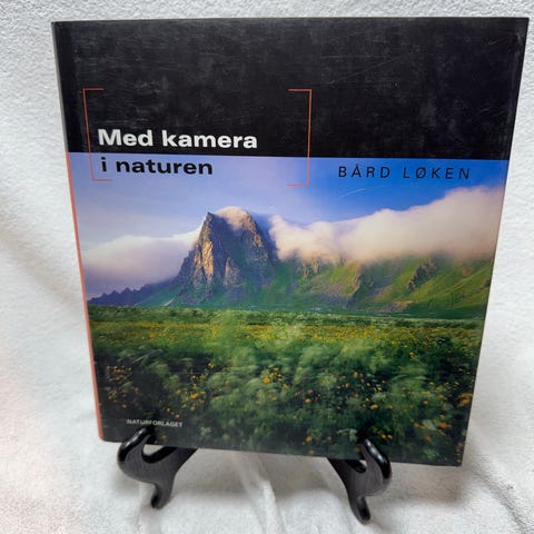 Landskapsbilde av fotograf Bård Løken, trykt på aluminium med motiv av fjell og vann. Solid treramme som base for aluminiumsplaten.