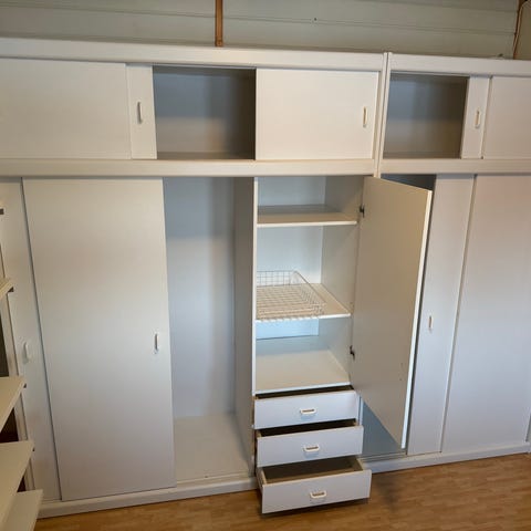 Fire HTH garderobeskap gies bort ved henting. To blir nå demontert de andre kan vi samarbeide om når dere henter. Lettere å skru sammen et skap man har vært med på å demontere. Disse skapene var nye for tre år siden. Skal ikke være synlig slitasje.