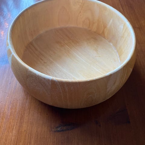 Sett med 7 treboller i ulike tresorter. Bollene varierer i farge og har en rund form med en bred kant. Passer til servering eller oppbevaring av matvarer. Naturlig tremateriale gir hver bolle et unikt utseende.