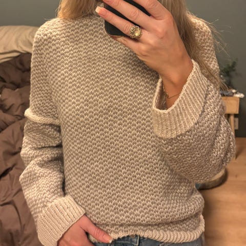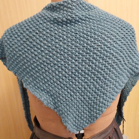 Selger et hjemmestrikket sjal i ull