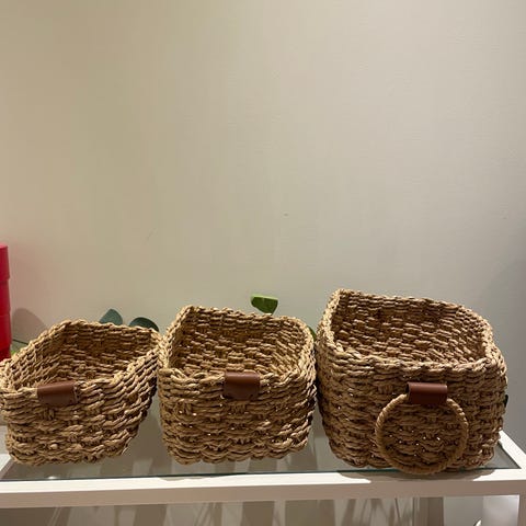 Egner seg best til oppbevaring av ting som ikke brukes daglig siden naturmaterialet flasser litt av hvis man løfter og flytter mye på disse. Egner seg ikke til f.eks. leker, lego.