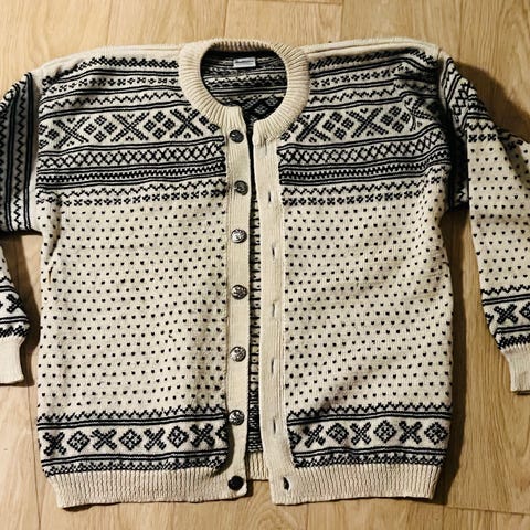 Ny hjemmestrikket genser,ren ull,selges kr 650,-