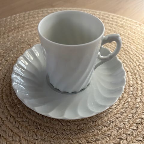 Knapt brukte kaffekopper m/skåler. Har 10 stk, kan sende