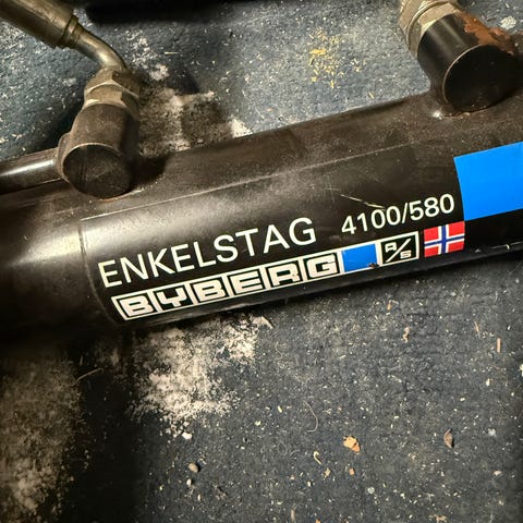 Fremdekk: 420/70R24. Skeiv slitt og en del sprekker + så ut som begge dekkene har vært hull i og plugget.