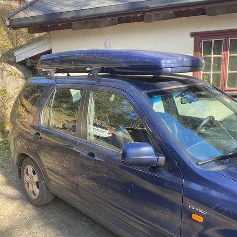 Jeg selger takboksen, da vi bruker den ikke. Den er gammel, men låsbar.