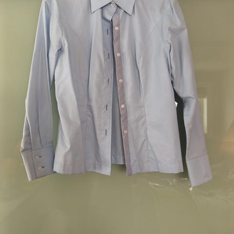skreddersydd skjorte som er innsvinget i midje. har oppstivede mansjetter og krage