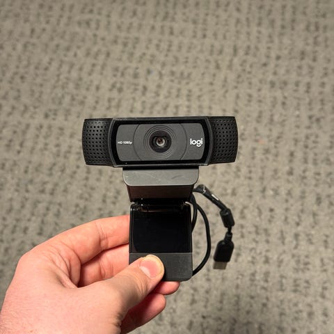 Logitech webkamera med USB-tilkobling. Passer for videokonferanser, streaming og generell bruk med datamaskin. Kompakt design og enkel å montere.