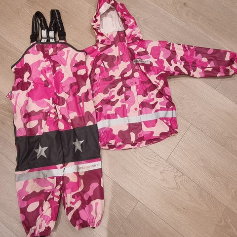 Klærne er pent brukt, og det meste av slitasje er kun på refleksen. Ellers er settet i svært god stand.
