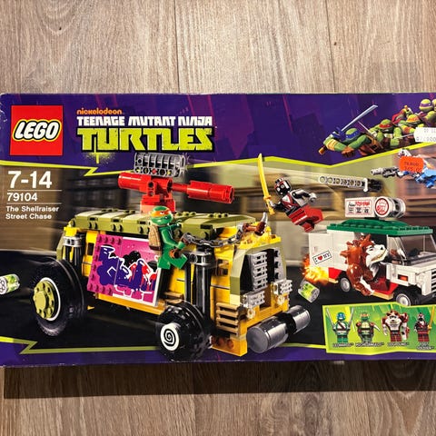 Teenage Mutant Ninja Turtles nr. 79122, Shredder's Lair Rescue, selges. Settet skulle hatt 5 figurer, men mangler Shredder og Raphael. Turtlefiguren Leonardo er lagt ved istedenfor så 4 figurer er med. Ellers er alle brikker og klistremerker med. Byggeinstruksjon kan lastes ned gratis på lego.com.