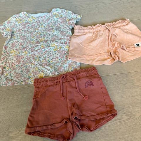 Stor klespakke med 9 tskjorter og 2 shortser i str 98/104