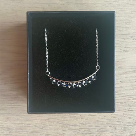 41 cm lang gullkjede og gullanheng med diamanter. Stempel på karat på begge 585. Fast pris.