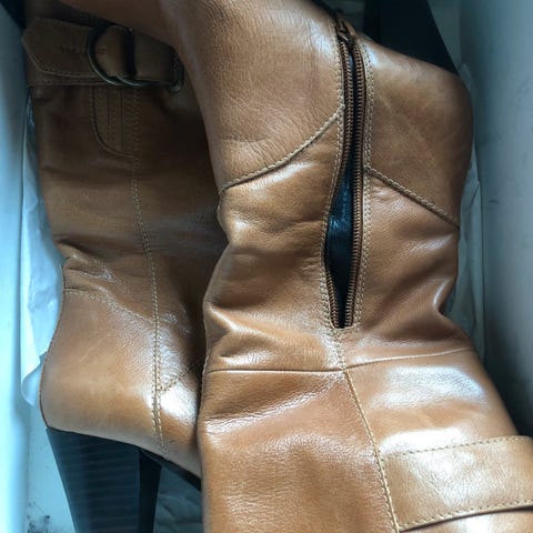 Selger mine nye lekte Salamander støvletter i ekte cognac farget skinn.