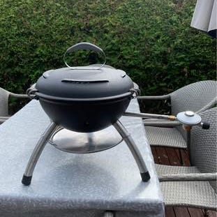 Sammenleggbar gassgrill i rustfritt stål. Kan også brukes som kullgrill ved å enkelt ta ut gassrøret. Følger med grillredskap. Kan sendes