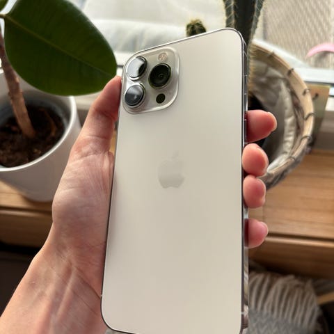 Apple iPhone 13 Pro Max mobiltelefon med 128 GB lagringskapasitet i hvit farge. Pent brukt og i god stand! Ingen synlig slitasje. Batterikapasitet 81%.