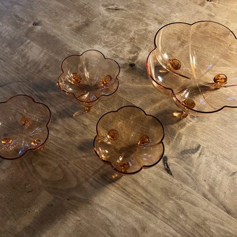 Art Deco Sonja dessertskåler i pressglass, vintage