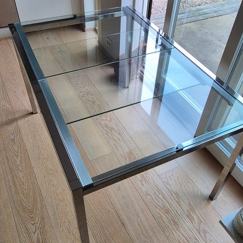 Meget pent glassbord salongbord . Bredde 75 cm og lengde 135 cm