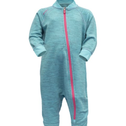 Devold Playsuit barn i blå farge, laget av merinoull. Passer for barn i størrelse 74 og er designet for unisex bruk. Plagget har langermet design og er egnet for å gi varme og komfort.