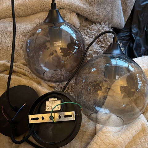 Taklamper i glass med sort oppheng