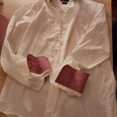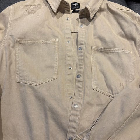 Zara skjorte i størrelse M, laget av 100 % viskose. Skjorten er hvit og har kort erme. Passer til menn. Fargen er ikke helt hvit den er mer beige