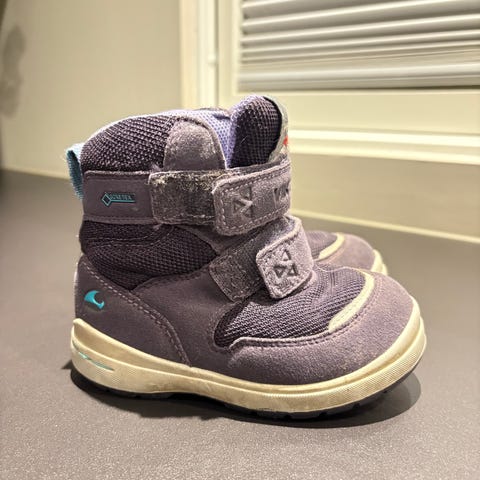 Viking barnevintersko i størrelse 23, designet for unisex bruk. Skoene har lilla farge og er laget med materialer egnet for kalde forhold.