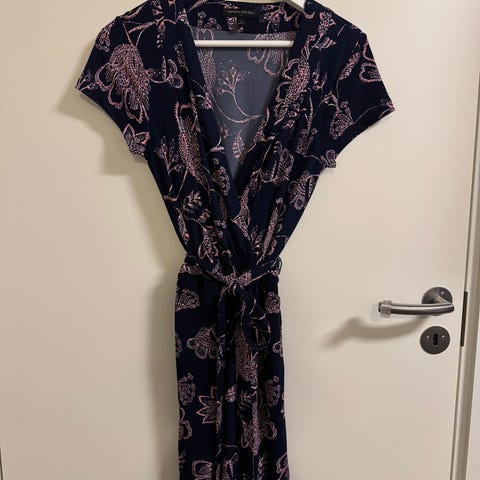 Banana Republic sommerkjole i størrelse S for kvinner. Kjolen er flerfarget med et blomsterprint og laget av bomull. Egnet for bruk i varme sesonger.