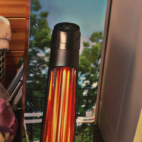 Terrassevarmer i svart farge med IP24-klassifisering for beskyttelse mot vannsprut. Egnet for oppvarming av utendørs områder som terrasser og balkonger.