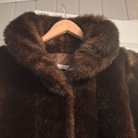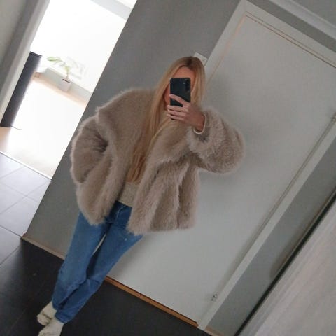 Lommene har hull og må repareres. Ellers en veldig pen jakke man føler seg fin i 😊