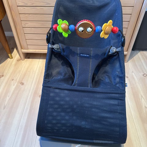 Selger vår vippestol (Bliss Mesh Svart) med treleke fra BabyBjörn. Er i god stand uten skader eller store merker. Dyre -og røykefritt hjem.