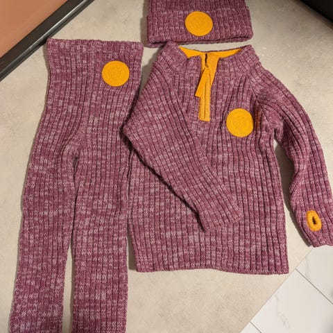 Ullgenser i størrelse 90, farge grå, laget i ullmateriale. Noen små hull.