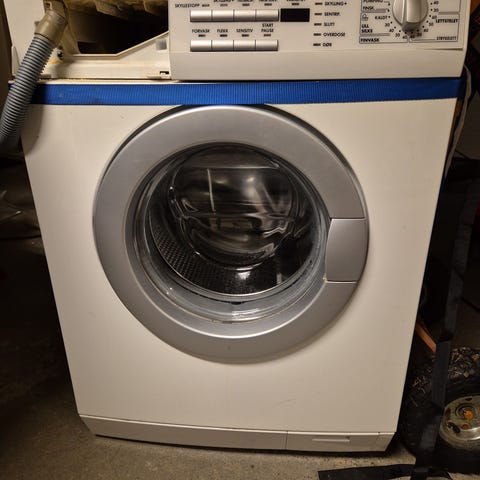 AEG Lavamat frontmatet vaskemaskin med flere vaskeprogrammer inkludert energisparing, super eco, intensiv kort, sportstøy, ull, silke og finvask. Maskinen har en kapasitet på 8 kg og tilbyr funksjoner som temperaturvalg, sentrifugering, og ulike sykluser for koking/kulørtvask, hygiene, og skånevask. Alder ukjent. Fungerer som den skal! Må hentes.