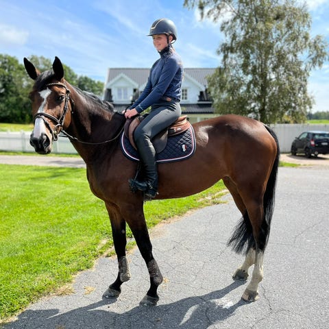 Hun har gått terapitimer hos oss, men selges ikke som nybegynnerhest.