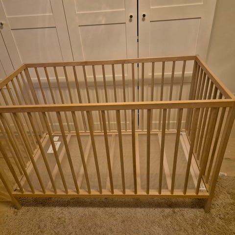 Følger med deler til å heve bunn samt madrass