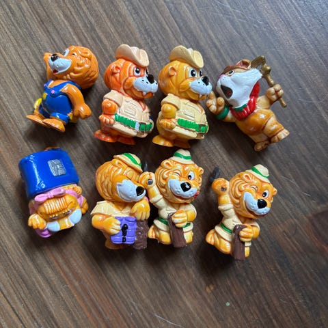 Selger 4 stk lekefigurer med hjul til kr 40 samlet.