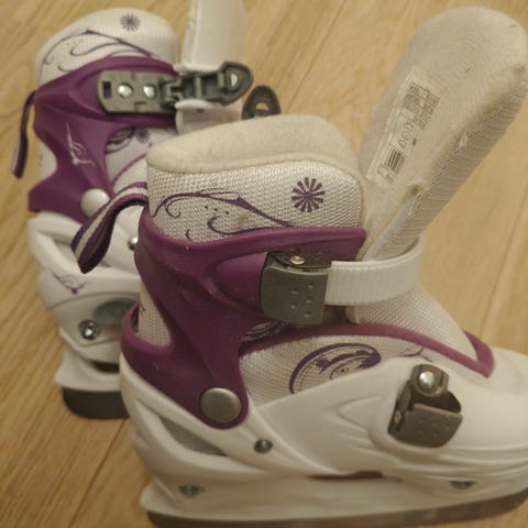 Lite brukt, men en del skraper på dem. Justerbare fra str 28-31.