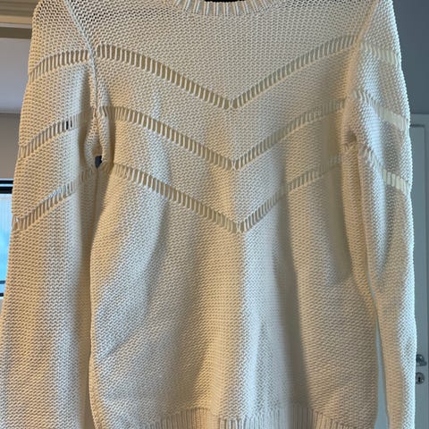 2NDDAY Genser i størrelse M for kvinner, laget av bomull. Genseren har hvit farge med sorte striper, og er designet med glidelås i halsen.