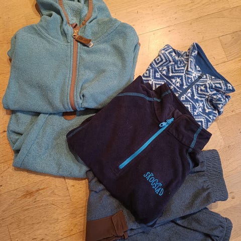 Selger en pakke med fleece av assorterte merker fra Skogstad, Reflex, Pomp de Lux etc i str 110 (noe 110-116).
