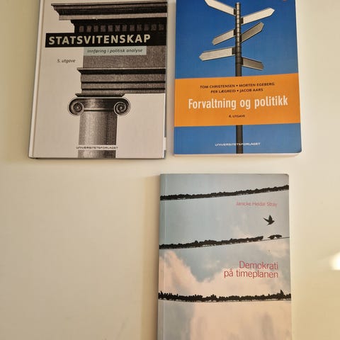 De seks obligatoriske pensumbøkene til semester vår 2026 i emnet POL1001 - Politisk teori og atferd. Selges samlet