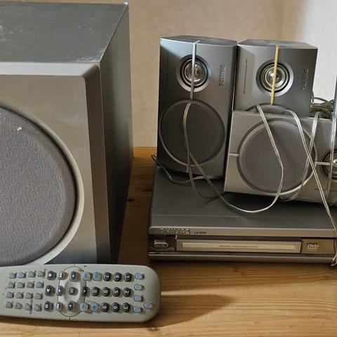 DVD-spiller, forsterker og 5 høytalere + subwoofer