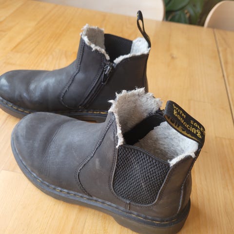 Dr. Martens støvler i størrelse 35.Støvlene har snøring foran og glidelås på siden for enkel på- og avkledning. Laget i holdbart materiale med klassisk Dr. Martens såle. God sko