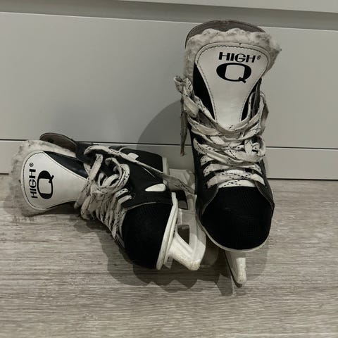 Pro Ishockeyskøyter i størrelse 41, med svart og hvit farge. Skøytene er designet for ishockey og har snøring for tilpasning.