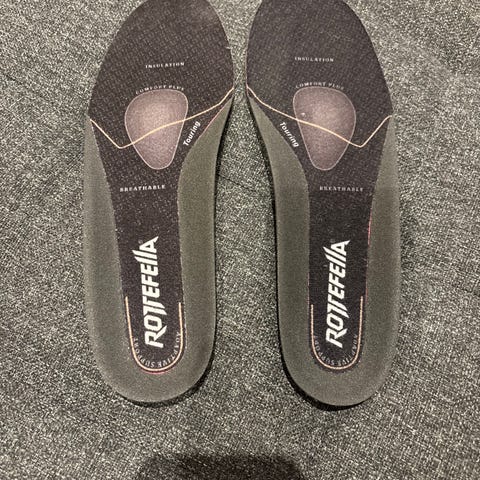 Ubrukte Rottefella såler til for eksempel skisko. Litt oppbygd for å gi støtte til føttene og trekker til seg fuktighet så føttene holder seg varme.