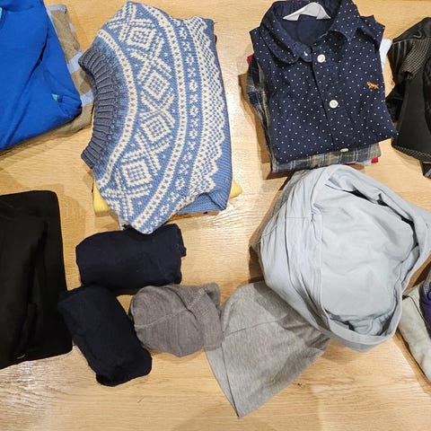 Flekker kan forekomme. Noe falmet farge på enkelte plagg.