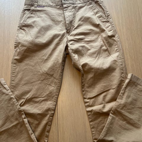 Pent brukte chinos fra Tommy Hilfiger. Kjøpt i flaggskip-butikken deres i New York. Ingen skader. Jeg er W32 i disse dager, defor selges de.