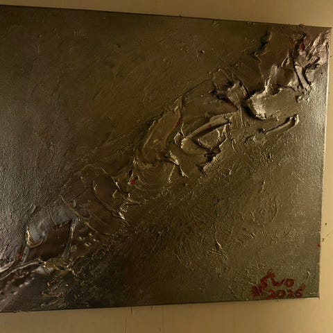 Fargene kommer ikke godt nok til sin rett på bildet som ligger her. Se kunstnerens hjemmeside for lignende bilder for mer riktige farger på andre malerier i samme serie. https://www.andoankunst.no/water?lightbox=dataItem-izyj0242