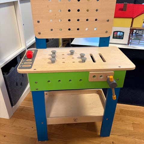 Gyngehesten er i god stand, med mye bruk igjen, men bruksmerker vil/kan forekomme. Noen av merkene var der når vi kjøpte den ny, som det gule merke på "gyngefoten" samt chippen på fotstøtten, men ingenting av dette går utover bruken.